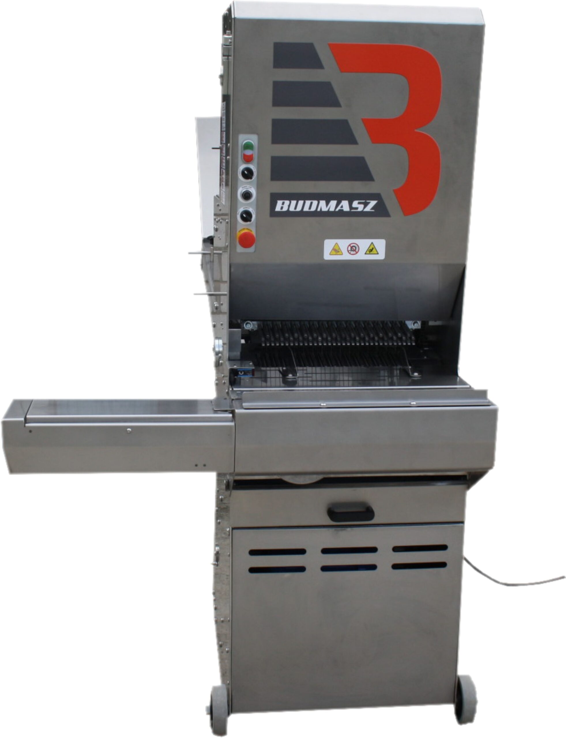 Mechanizm tnący napędzany jest silnikiem elektrycznym, który jest połączony z dolnym bębnem za pomocą przekładni pasowej. Bęben obraca się wokół osi poziomej zamocowanej w dolnej części korpusu maszyny i napędza piły taśmowe, które są skręcone w ósemkę i zamontowane na bębnie dolnym i górnym Krajalnica jest wyposażona w nowy system smarowania trzeciej generacji. Układ smarowania trzeciej generacji oznacza grawitacyjny spływ oleju do listwy smarującej. Ta metoda jest uważana za najlepszą w przeciwieństwie do nakładania oleju przez dysze z wytworzeniem „mgły”, a także w porównaniu do nakładania oleju na noże za pomocą wałka. Czas smarowania jest programowany do potrzeb klienta. Przesuwanie chleba do strefy krojenia odbywa się za pomocą dwóch par (górnego, dolnego ) przenośnika, napędzane motoreduktorem, prędkość podajnika posiada płynną regulacje na panelu sterującym. Odbiór chleba w systemie AUTO-STOP, oznacza dwa tryby pracy w jakim można odbierać chleb, pierwszy tryb to ciągły, gdzie pokrojony chleb wychodzi ze stałą prędkością, drugi tryb to Auto-Stop, gdzie po przejściu pokrojonego chleba w strefę czujnika optycznego zatrzymuje się przenośnik. Maszyna została skonstruowana tak żeby był łatwy dostęp, do czyszczenia i wymiany noży.