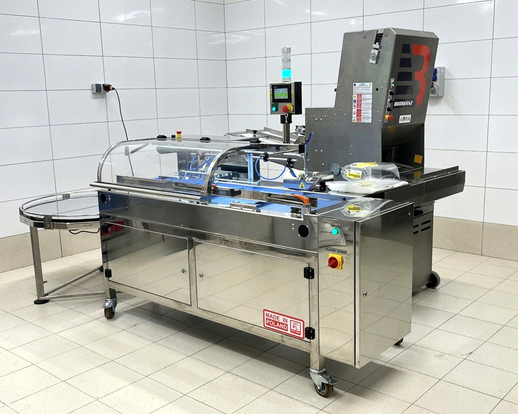 Produkt jest umieszczany w uprzednio rozdmuchanym woreczku i odkładany na poprzecznej taśmie podającej. W kolejnych krokach następuje odsysanie z woreczka nadmiaru powietrza i zamknięcie klipsem drucianym z wcześniej naniesioną datą poprzez drukarke termiczną. Gotowy, zamknięty w ten sposób produkt może być następnie zdejmowany ręcznie lub gromadzony na stole obrotowym.