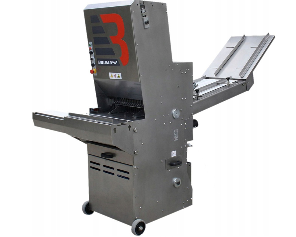 - Taśmy prowadzące boczne, góra, dolna w standardzie umożliwiające krojenia każdego rodzaju chleba.